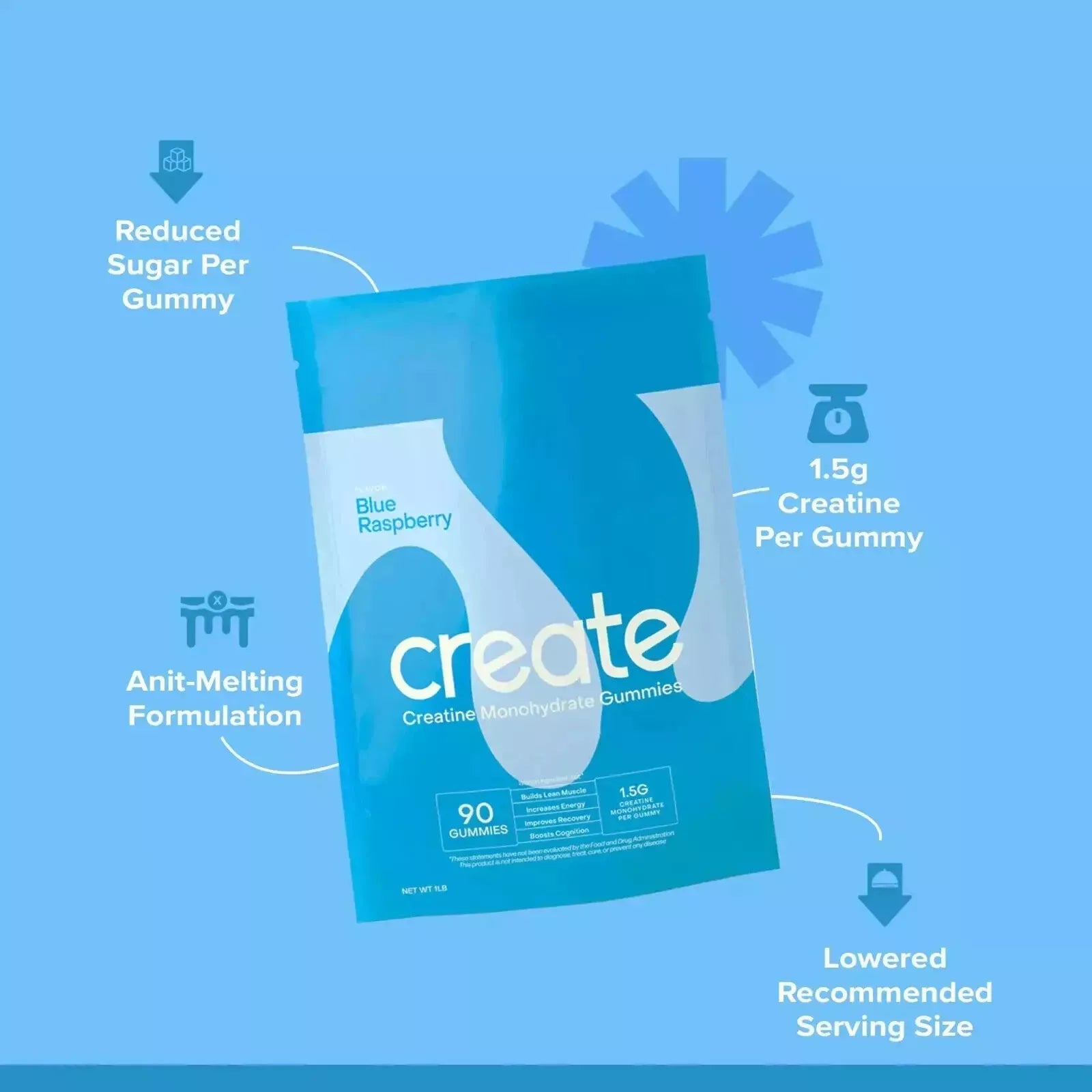 Creatine Monohydrate Gummies for Men & Women – Blue Raspberry Flavor – 90 Count