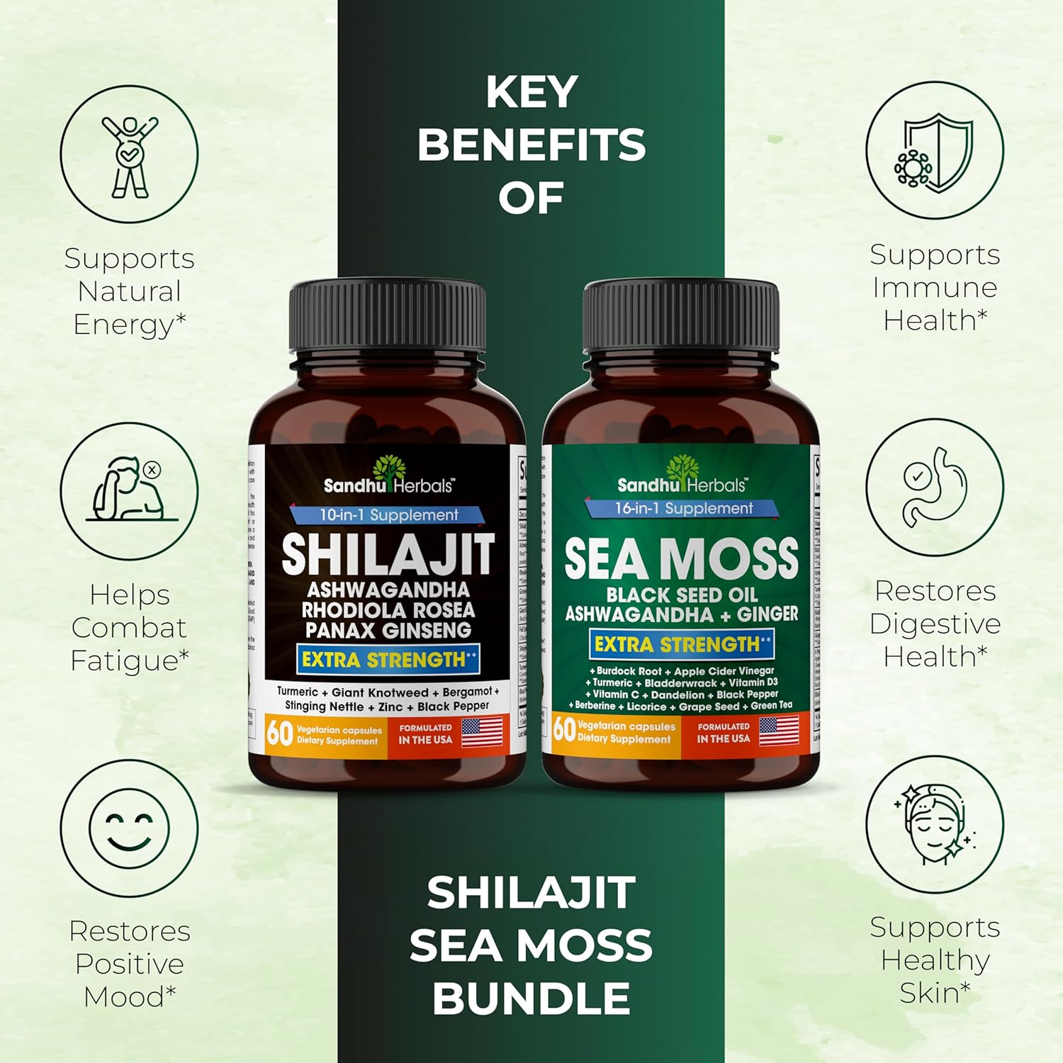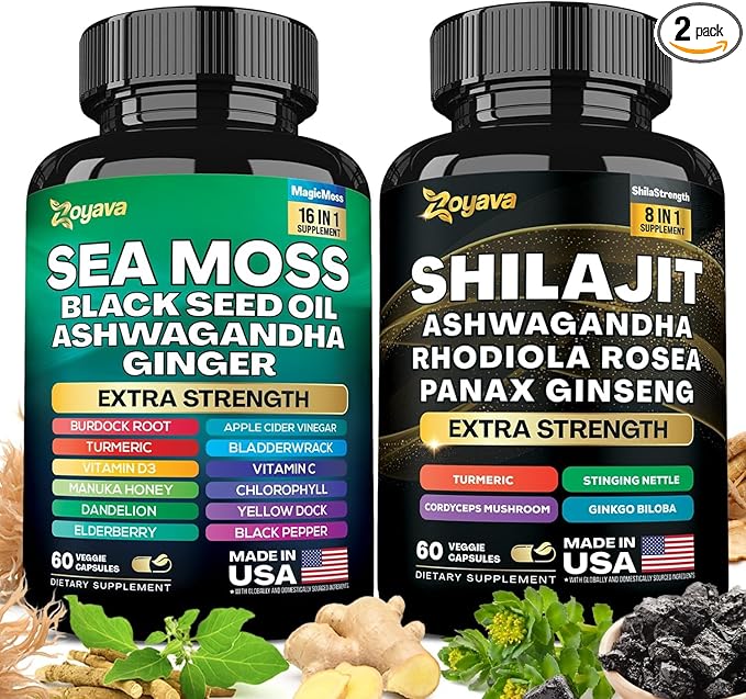 Shilajit Sea Moss Ashwagandha Combo Bundle - 120 Capsules, Seamoss for Men & Women