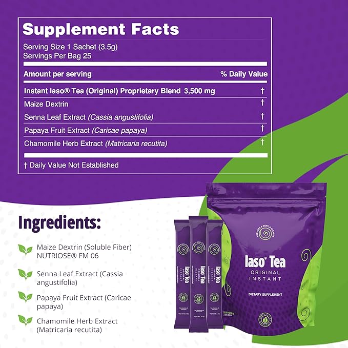 With its convenient single-serve packets, you can take Iaso Instant Tea anywhere—whether you’re at home, in the office, or on the go. Simply mix with water, stir, and enjoy a light, soothing tea that fits easily into your day.
